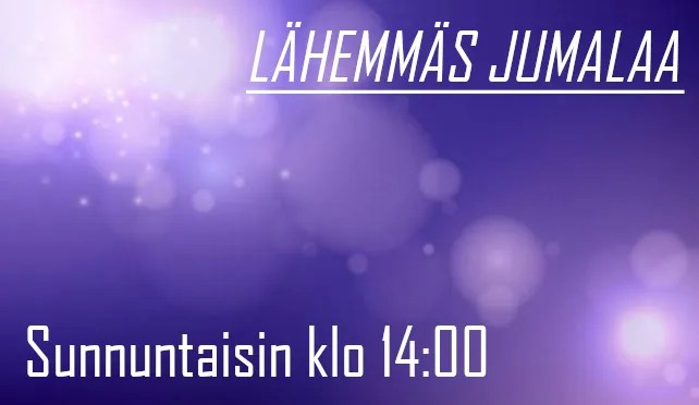 Sunnuntaisin: ”Lähemmäs Jumalaa” Jumalanpalvelus klo 14:00